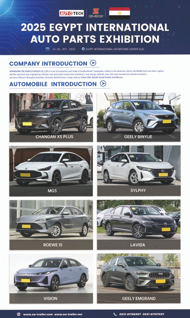 We warmly invite all clients, distributors, and business partners to join ZW Group Vehicle at the 2025 Egypt International Auto Parts Exhibition.